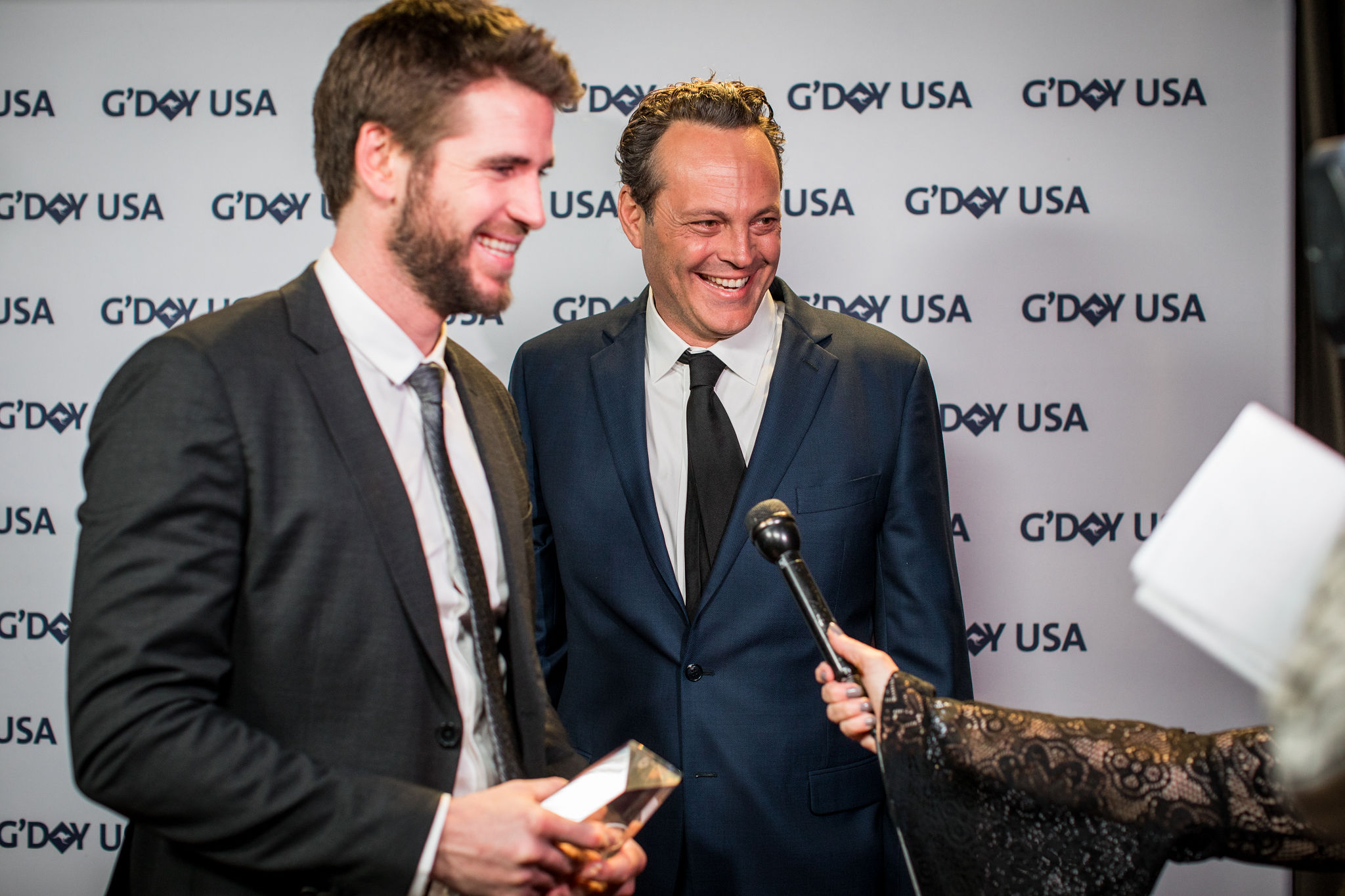 The star-studded guest list included our very own (Aussie) Liam Hemsworth, who was an honored guest, presented with a G’Day USA Excellence in Film award. He attended with his now-wife Miley Cyrus. Check out the reel below for some of the other familiar faces who shared the evening with us.
