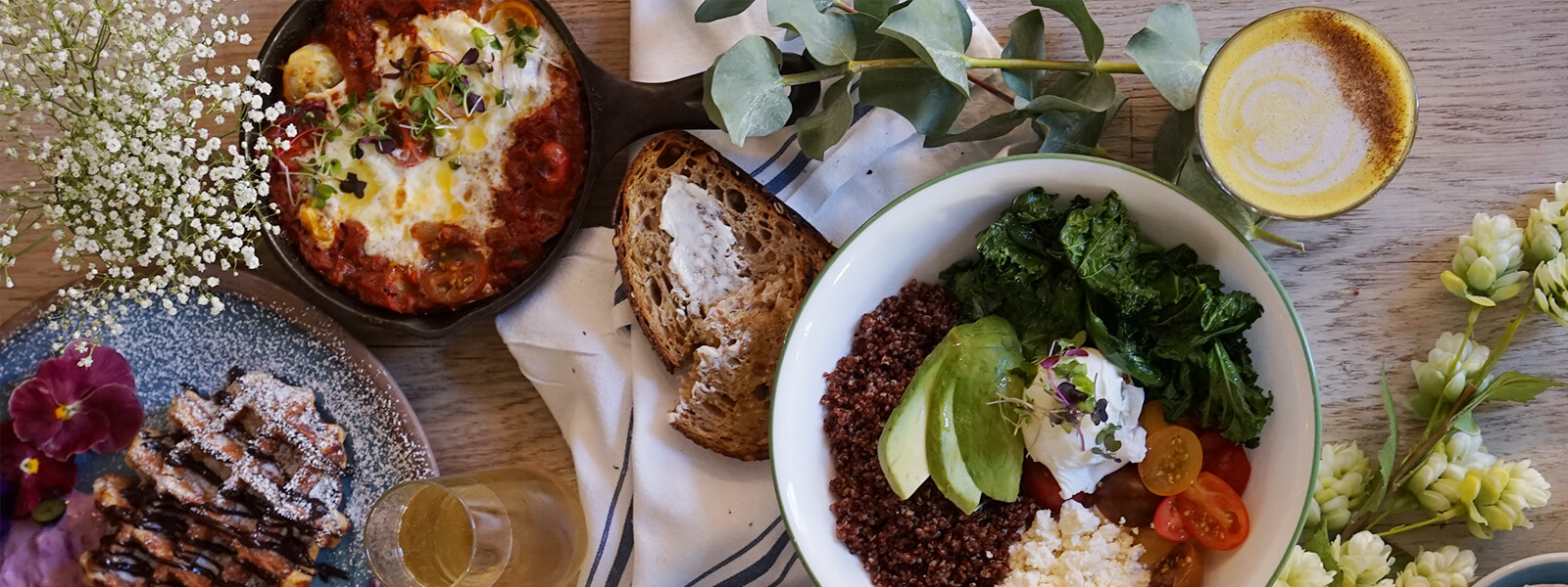Get lots of nourishing goodness from our new warm breakfast bowl, featuring sautéed kale, avocado, heirloom cherry tomatoes, red quinoa, feta & a poached egg.